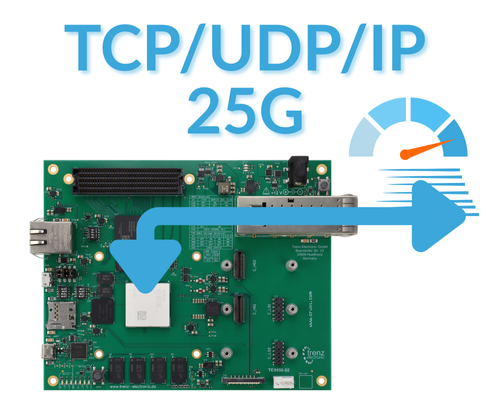 TE0950 with 25G Linux Network Stack (Non-Accelerated) The FFSS-TE0950-Netdev-25G is a customizable FPGA design platform for Linux-based (non-accelerated) 25 GigE network connectivity. This FPGA Full Systems Stack combines an MLE optimized Linux network stack with Trenz Electronic’s TE0950 Evaluation Board featuring the AMD Versal™ AI Edge VE2302. All key functionality is pre-integrated and pre-validated and ships as a compilable FPGA design project along with an IP-Core license from MLE. |